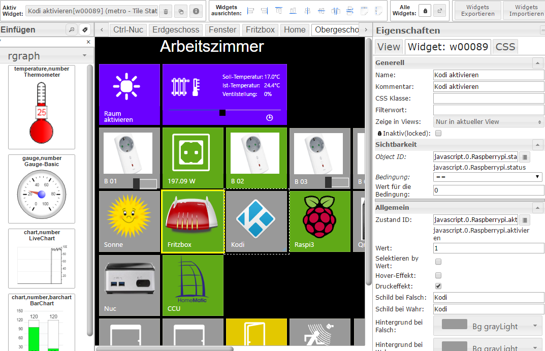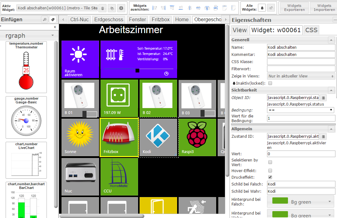 [{"tpl":"tplRGBSpectrum","data":{"visibility-cond":"==","visibility-val":1,"divisor":"1","red-oid":"javascript.0.VIS.System.Navigation.Farben.rot","green-oid":"javascript.0.VIS.System.Navigation.Farben.gruen","blue-oid":"javascript.0.VIS.System.Navigation.Farben.blau","name":"Farbpicker Hauptmenü","decimal":"0","gestures-offsetX":0,"gestures-offsetY":0,"factor":"1","signals-cond-0":"==","signals-val-0":true,"signals-icon-0":"/vis/signals/lowbattery.png","signals-icon-size-0":0,"signals-blink-0":false,"signals-horz-0":0,"signals-vert-0":0,"signals-hide-edit-0":false,"signals-cond-1":"==","signals-val-1":true,"signals-icon-1":"/vis/signals/lowbattery.png","signals-icon-size-1":0,"signals-blink-1":false,"signals-horz-1":0,"signals-vert-1":0,"signals-hide-edit-1":false,"signals-cond-2":"==","signals-val-2":true,"signals-icon-2":"/vis/signals/lowbattery.png","signals-icon-size-2":0,"signals-blink-2":false,"signals-horz-2":0,"signals-vert-2":0,"signals-hide-edit-2":false},"style":{"left":354,"top":"960px","z-index":"20","width":"52px","height":"33px"},"widgetSet":"colorpicker"},{"tpl":"tplValueFloat","data":{"oid":"javascript.0.VIS.System.Navigation.Farben.rot","visibility-cond":"==","visibility-val":1,"is_comma":"true","factor":"1","html_prepend":"Rot: ","digits":"0","name":"Hintergrund Hauptmenue Farben einstellen - Rot","signals-cond-0":"==","signals-val-0":true,"signals-icon-0":"/vis/signals/lowbattery.png","signals-icon-size-0":0,"signals-blink-0":false,"signals-horz-0":0,"signals-vert-0":0,"signals-hide-edit-0":false,"signals-cond-1":"==","signals-val-1":true,"signals-icon-1":"/vis/signals/lowbattery.png","signals-icon-size-1":0,"signals-blink-1":false,"signals-horz-1":0,"signals-vert-1":0,"signals-hide-edit-1":false,"signals-cond-2":"==","signals-val-2":true,"signals-icon-2":"/vis/signals/lowbattery.png","signals-icon-size-2":0,"signals-blink-2":false,"signals-horz-2":0,"signals-vert-2":0,"signals-hide-edit-2":false},"style":{"left":"455px","top":964,"z-index":"20","width":"100px","height":"18px","color":"rgba(250,250,250,1);","text-align":"right"},"widgetSet":"basic"},{"tpl":"tplValueFloat","data":{"oid":"javascript.0.VIS.System.Navigation.Farben.gruen","visibility-cond":"==","visibility-val":1,"is_comma":"true","factor":"1","html_prepend":"Grün: ","digits":"0","name":"Hintergrund Hauptmenue Farben einstellen - Grün","signals-cond-0":"==","signals-val-0":true,"signals-icon-0":"/vis/signals/lowbattery.png","signals-icon-size-0":0,"signals-blink-0":false,"signals-horz-0":0,"signals-vert-0":0,"signals-hide-edit-0":false,"signals-cond-1":"==","signals-val-1":true,"signals-icon-1":"/vis/signals/lowbattery.png","signals-icon-size-1":0,"signals-blink-1":false,"signals-horz-1":0,"signals-vert-1":0,"signals-hide-edit-1":false,"signals-cond-2":"==","signals-val-2":true,"signals-icon-2":"/vis/signals/lowbattery.png","signals-icon-size-2":0,"signals-blink-2":false,"signals-horz-2":0,"signals-vert-2":0,"signals-hide-edit-2":false},"style":{"left":"455px","top":986,"z-index":"20","width":"100px","height":"18px","color":"rgba(250,250,250,1);","text-align":"right"},"widgetSet":"basic"},{"tpl":"tplValueFloat","data":{"oid":"javascript.0.VIS.System.Navigation.Farben.blau","visibility-cond":"==","visibility-val":1,"is_comma":"true","factor":"1","html_prepend":"Blau: ","digits":"0","name":"Hintergrund Hauptmenue Farben einstellen - Blau","signals-cond-0":"==","signals-val-0":true,"signals-icon-0":"/vis/signals/lowbattery.png","signals-icon-size-0":0,"signals-blink-0":false,"signals-horz-0":0,"signals-vert-0":0,"signals-hide-edit-0":false,"signals-cond-1":"==","signals-val-1":true,"signals-icon-1":"/vis/signals/lowbattery.png","signals-icon-size-1":0,"signals-blink-1":false,"signals-horz-1":0,"signals-vert-1":0,"signals-hide-edit-1":false,"signals-cond-2":"==","signals-val-2":true,"signals-icon-2":"/vis/signals/lowbattery.png","signals-icon-size-2":0,"signals-blink-2":false,"signals-horz-2":0,"signals-vert-2":0,"signals-hide-edit-2":false},"style":{"left":"455px","top":1010,"z-index":"20","width":"100px","height":"18px","color":"rgba(250,250,250,1);","text-align":"right"},"widgetSet":"basic"},{"tpl":"tplHtml","data":{"visibility-cond":"==","visibility-val":1,"refreshInterval":"0","html":"