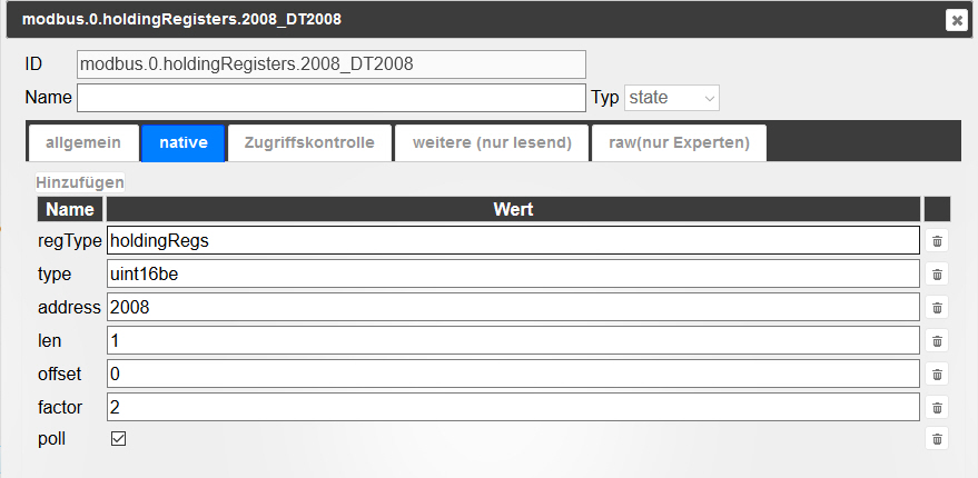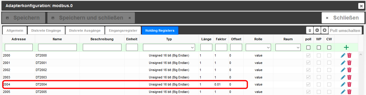 ich möchte Werte, die von einer SPS über Modbus Holding Register kommen, skalieren. So kommt z.B. über das Register 2004 der Wert 19014, der mit 0,01 multipliziert und dann als 190,14 angezeigt werden soll. Bei anderen Visualisierungssystemen kann man Werte in der Objekteinstellung skalieren. Ich habe zwar in den Objekteinstellungen ein Feld gefunden mit der Bezeichnung Faktor, jedoch verändert sich der Variablenwert nicht wenn man den Faktor ändert.