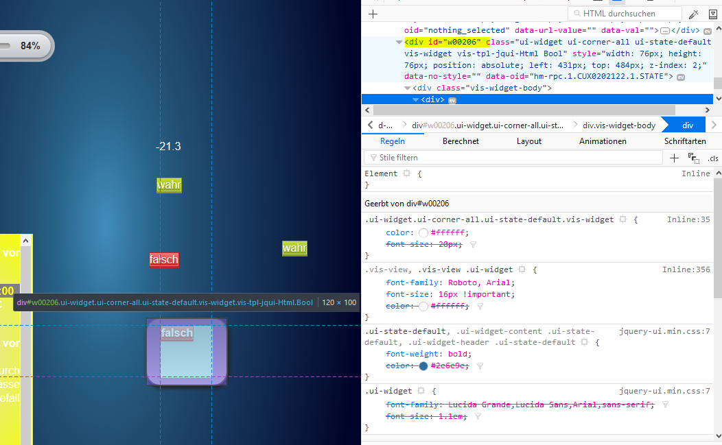 Am einfachsten untersuchst Du das im F12 Editor und dann im echten View - also nicht im Editor. Dann auf das Widget gehen und mittels rechter Maustaste auf "Untersuchen". Wenn Du im Quellcode mit der Maus rüber gehst, siehst du sehr schön die Hervorhebung.