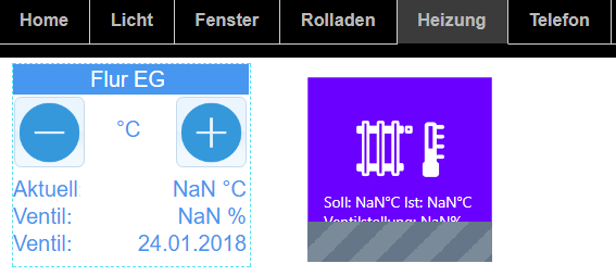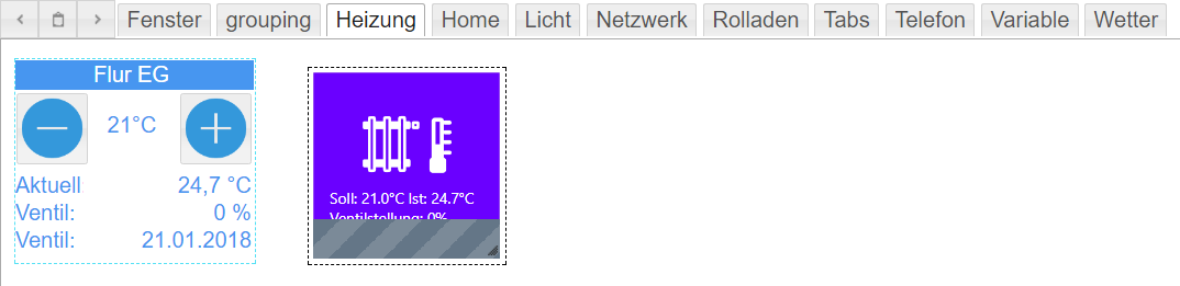 ich probiere gerade das Widget Tabs für meine unterschiedlichen Seitenansichten aus. Erstellt habe ich erst einmal 10 Seite, unter anderem eine für Heizung. Bei aufrufen der Seiten über den Reiter Tabs, wird die aktuelle Heizungstemperatur um bis zu 2,5 Minuten verzögert angezeigt. Wenn ich die View Heizung direkt ohne Tabs aufrufe sehe ich sofort alle Daten. Irgendwie werden die Anzeigeinformationen beim verwenden des Widget Tabs stark verzögert oder gibt es eine Einstellungsmöglichkeit das sofort alle Daten aktualisiert werden?