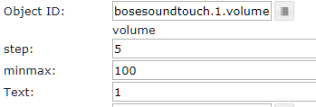 hier nochmal das gesamte Widget für "Lauter" eingestellt auf den Datenpunkt "volume" vom Bose Adapter.