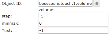 [{"tpl":"tplIconInc","data":{"oid":"bosesoundtouch.0.volume","visibility-cond":"==","visibility-val":1,"step":"5","minmax":"100","text":"Lauter","repeat_delay":"800","repeat_interval":"800","src":"/icons-mfd-svg/control_arrow_up.svg","imageHeight":"65","invert_icon":false,"signals-cond-0":"==","signals-val-0":true,"signals-icon-0":"/vis/signals/lowbattery.png","signals-icon-size-0":0,"signals-blink-0":false,"signals-horz-0":0,"signals-vert-0":0,"signals-hide-edit-0":false,"signals-cond-1":"==","signals-val-1":true,"signals-icon-1":"/vis/signals/lowbattery.png","signals-icon-size-1":0,"signals-blink-1":false,"signals-horz-1":0,"signals-vert-1":0,"signals-hide-edit-1":false,"signals-cond-2":"==","signals-val-2":true,"signals-icon-2":"/vis/signals/lowbattery.png","signals-icon-size-2":0,"signals-blink-2":false,"signals-horz-2":0,"signals-vert-2":0,"signals-hide-edit-2":false,"visibility-groups-action":"hide","name":"Medien_Lauter_Z0","lc-type":"last-change","lc-is-interval":true,"lc-is-moment":false,"lc-format":"","lc-position-vert":"top","lc-position-horz":"right","lc-offset-vert":0,"lc-offset-horz":0,"lc-font-size":"12px","lc-font-family":"","lc-font-style":"","lc-bkg-color":"","lc-color":"","lc-border-width":"0","lc-border-style":"","lc-border-color":"","lc-border-radius":10,"lc-zindex":0},"style":{"left":"1010px","top":"460px","width":"80px","height":"80px","background":"black","background-color":"black","font-family":"RobotoCondensed-Light","font-style":"normal","font-variant":"normal","font-weight":"lighter","font-size":"16px","line-height":"20px"},"widgetSet":"jqui"}]