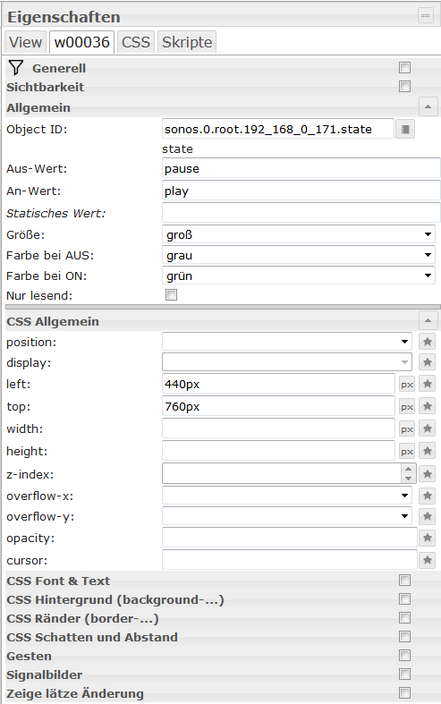 - Ich wollte eine "CheckBox" so Belegen das der "SwipeSchalter" in der linken Stellung meine Sonos Anlage auf Pause Stellt und in der rechten Stellung auf Play.
