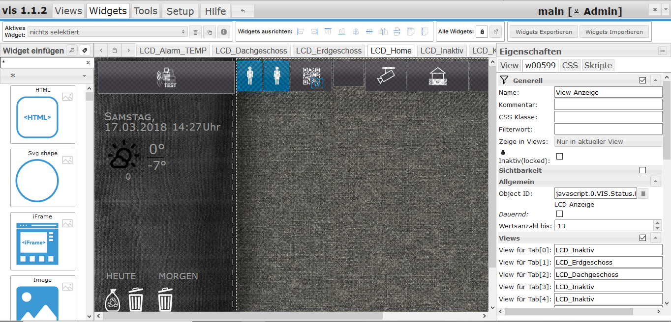 Widgets mehr angezeigt. Klicke Ich ein Widgets direkt an, werden mir die Eigenschaften angezeigt, doch auch dann