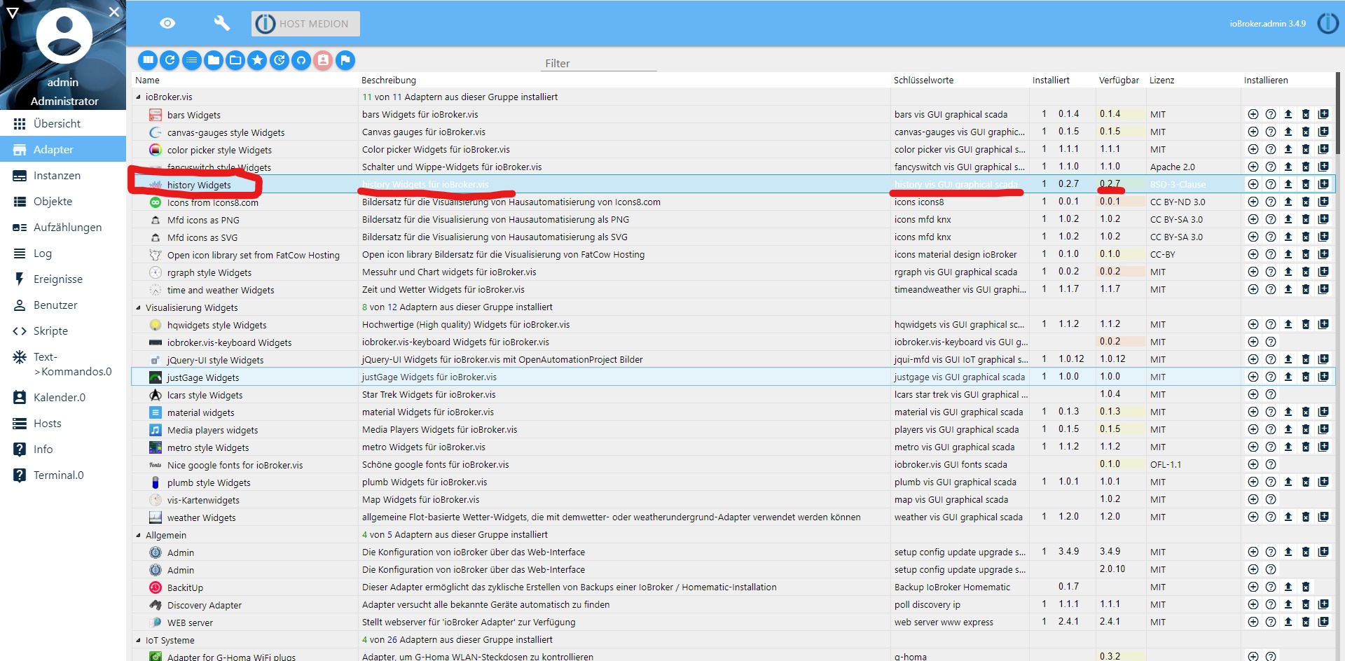 Jetzt kämpfe ich nur damit, dass ich vorhin vis geupdatet habe und ich vis jetzt gar nicht mehr aufrufen kann.
