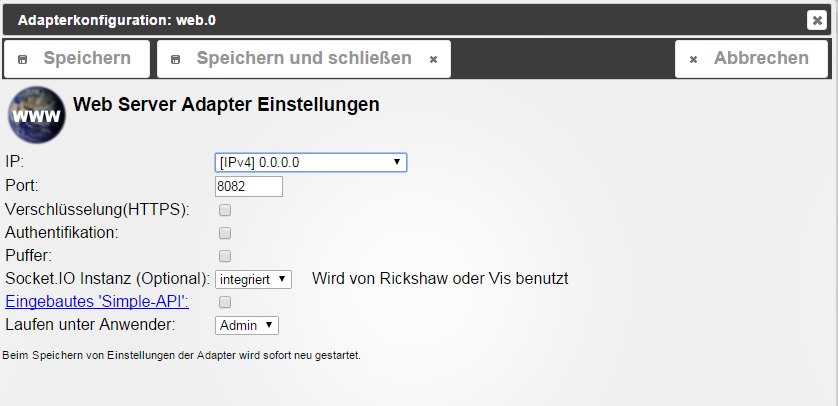 welche Einstellungen habt ihr eigentlich im web Adapter?