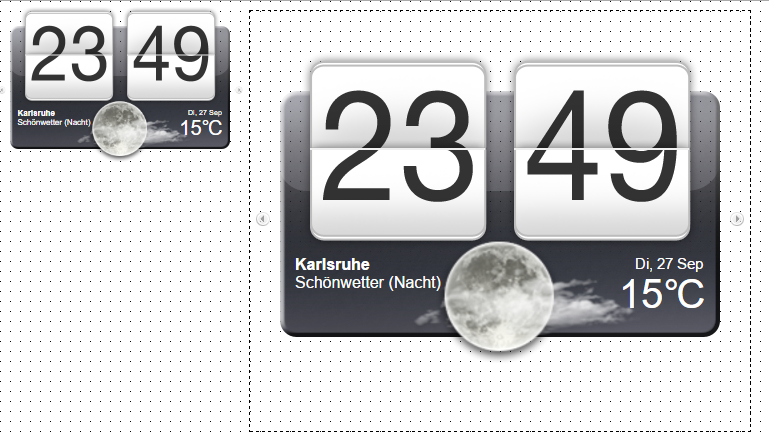 Nur eine Kleinigkeit: die Grosse von dem Widgetsrahmen ist immer noch die Original, auch wenn das Widget 50% hat. Wenn ich versuche width und heigth anzupassen wird das Widget abgeschnitten.
