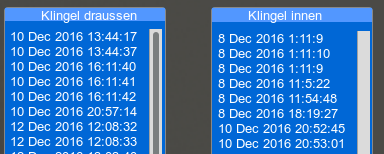 ich habe zwar einen Klingelsensor auf Mysensors Basis, frage dann die Variable auf Update ab und erstelle dann eine Liste mit dem Timestamp. Diese kann dann im Vis angezeigt werden. Am Anfang war die Zeit noch nicht richtig formatiert, siehe rechts oben. Stimmt aber jetzt.