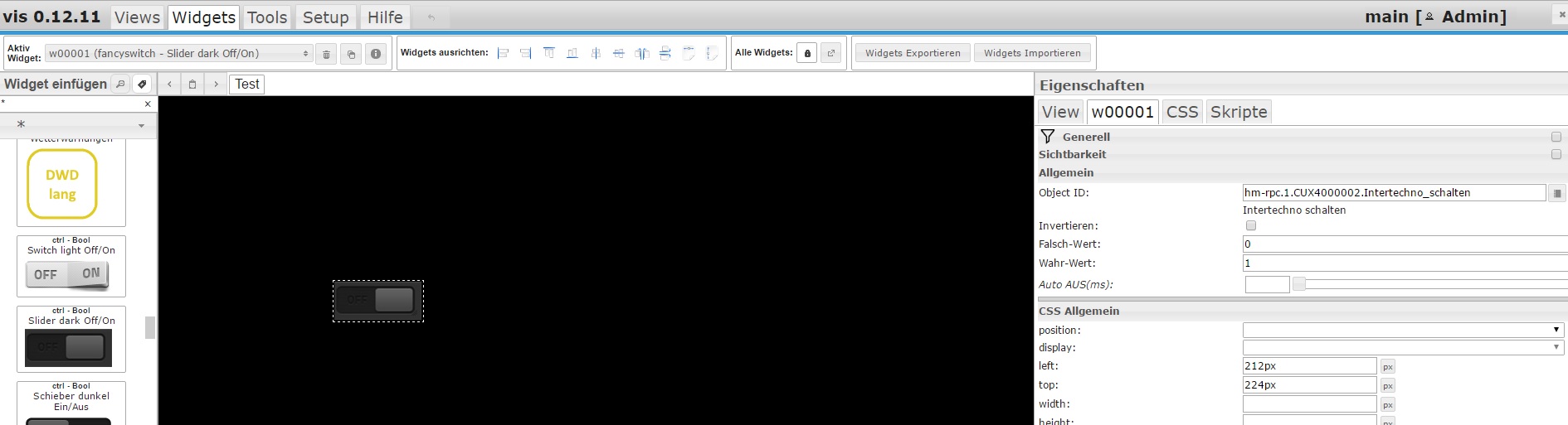 vorweg, ich kenne mich nicht wirklich mit Skripten aus, ist auch mein erster Versuch in VIS etwas zu realisieren. Habe aber versucht es wie hier erläutert zu übernehmen. Leider passiert nichts, wenn ich auf den Schalter drücke. Ein Objekt habe ich angelegt und im Widget auch ausgewählt…