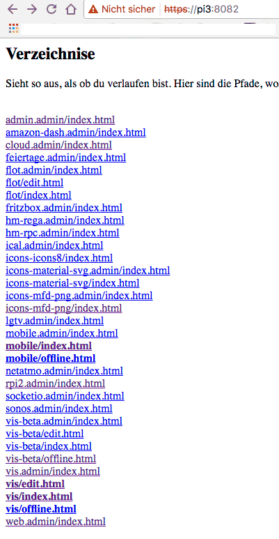 Also bei http://IP:8082/vis/ kommt "die Seite funktioniert nicht – hat keine Daten gesendet -- ERR_EMPTY_RESPONSE"