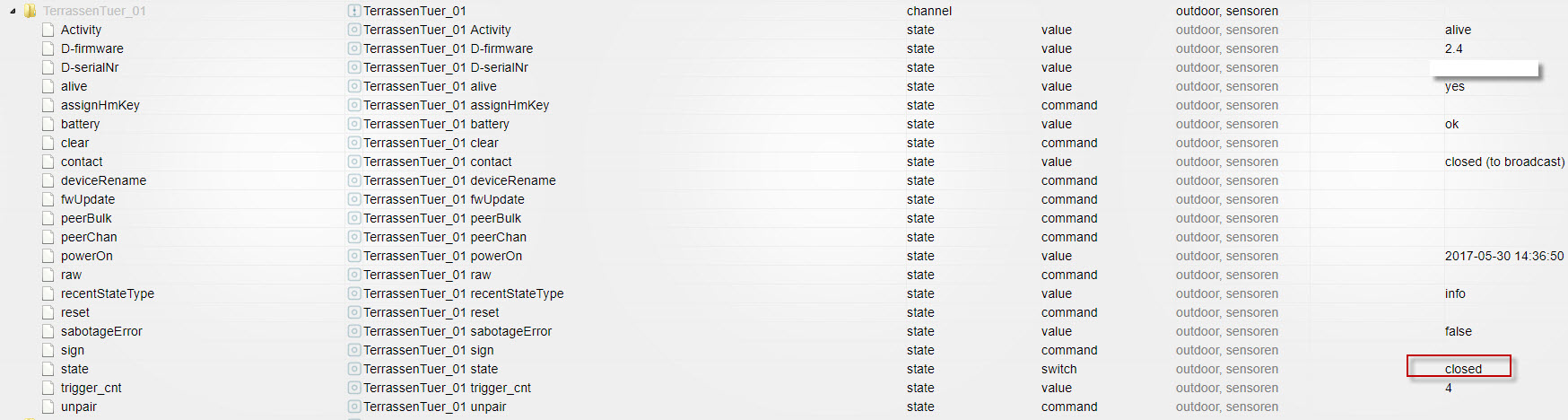 Die Homematic Schalter (nicht IP) liefern true oder false in Status Feld, daher werden diese auch problemlos angezeigt, hingegen liefern die Sensoren die Werte open bzw. closed