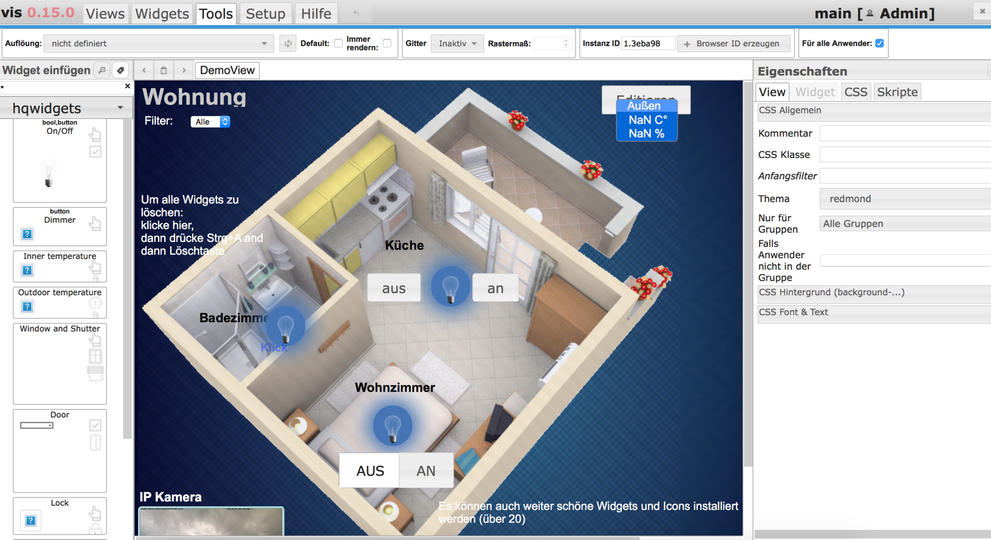 Gibt es da sonst noch eine Möglichkeit? Vis Version ist 0.15.0 Die Vis Version anzeige blinkt auch immer rot links oben.