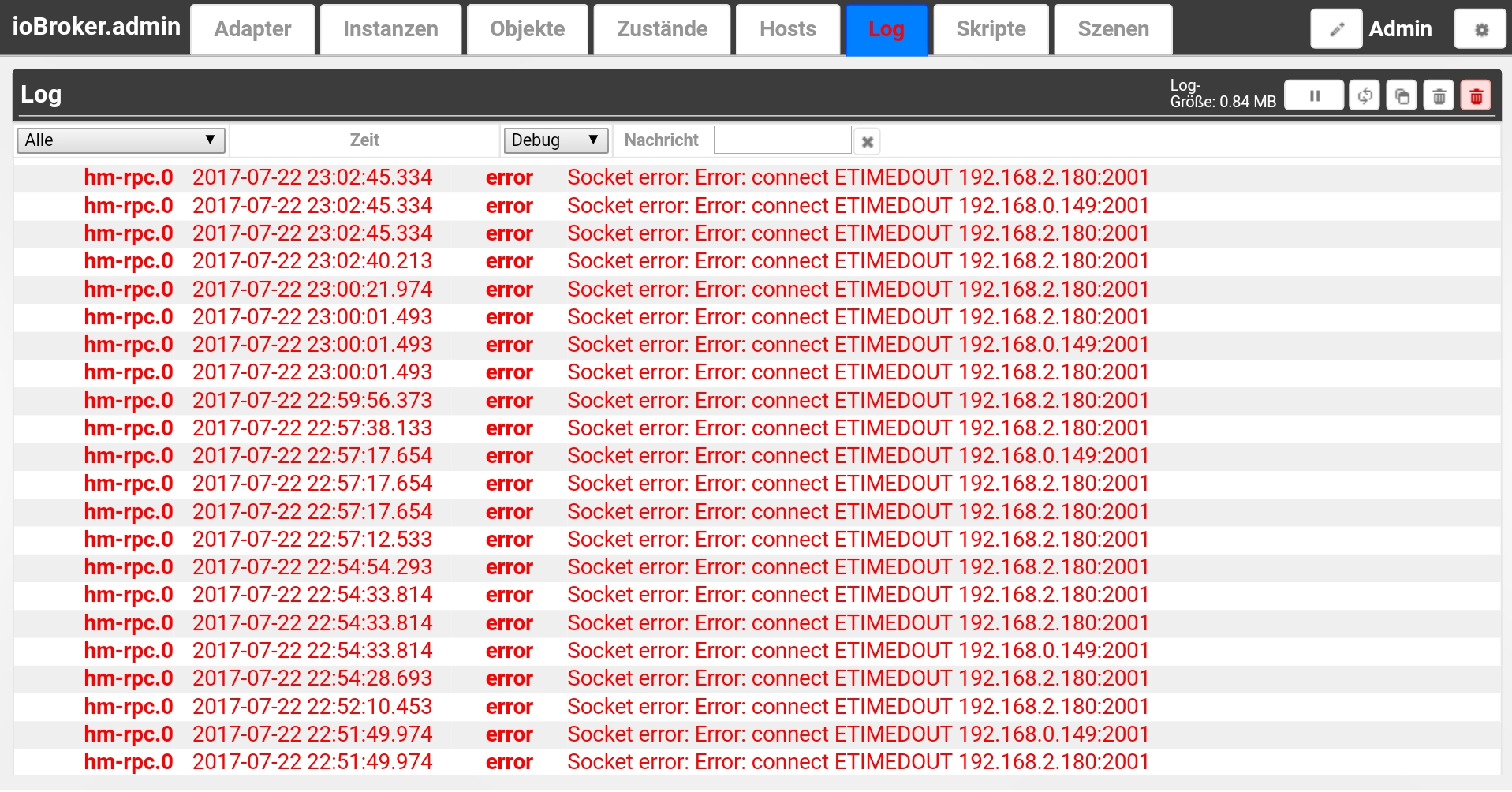Ich nutze iobroker seit einiger Zeit, da ich im Netzwerk einiges ändern musste hat sich auch die IP vom iobroker und der raspimatic geändert. Zuerst habe ich die Konfiguration einfach überschrieben, aber ich bekam immer Fehlermeldung bei der Anmeldung. Dann habe ich die Adapter gelöscht und neu installiert, aber das hat auch nichts gebracht. Die Adapter mit 0 und 1 konnte ich nicht nutzen.