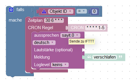 Da Schedule ist der Trigger, die IF la Abfrage und sayit ls ausgabe