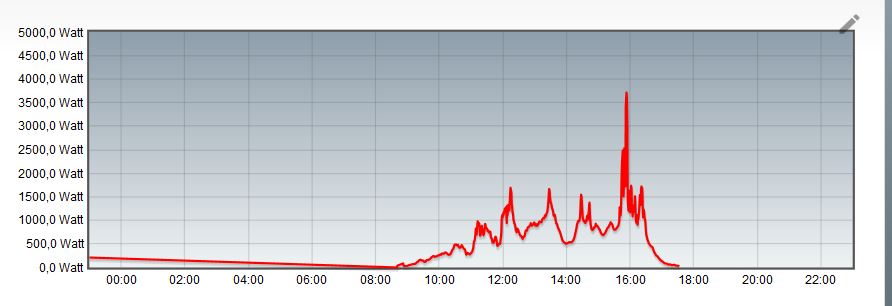 Zusätzlich ein Screenshot von der aktuellen PV-Leistung. Diese fängt leider fälschlicherweise am Tag nicht bei 0 an