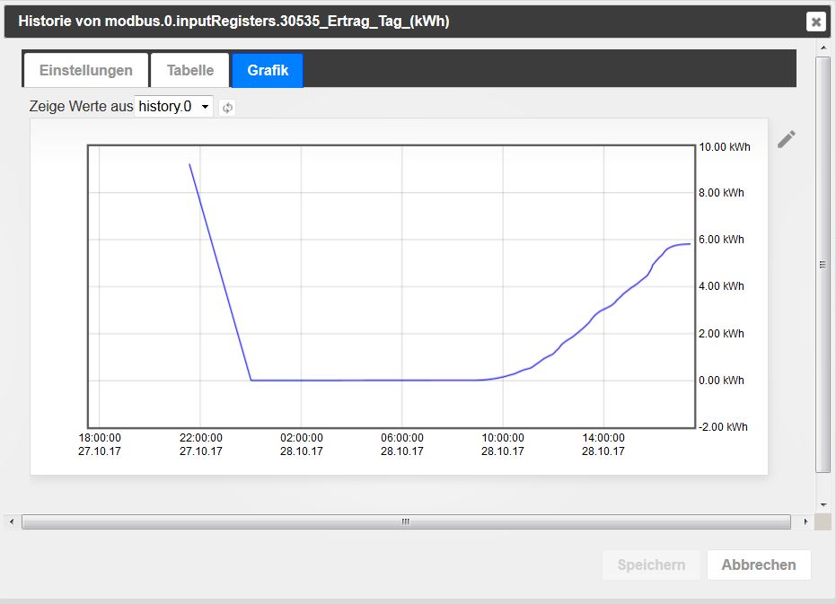 Mehr wie der gestrige kann das Diagramm nicht anzeigen, da ich die History für den Wert erst gestern eingeschaltet habe.