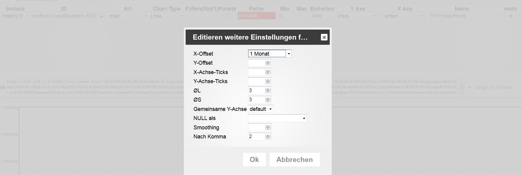 Und bitte auch die gemachten Einstellungen im Flot zu dem Datenpunkt (alle Reiter, bitte).