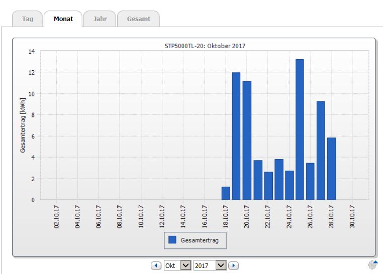 ok, das ist jetzt klargestellt.Also kein Verlauf über einen Monat und auch keine Monatsbalken. Sondern die Tage als Balken und das für den aktuellen (?) Monat?