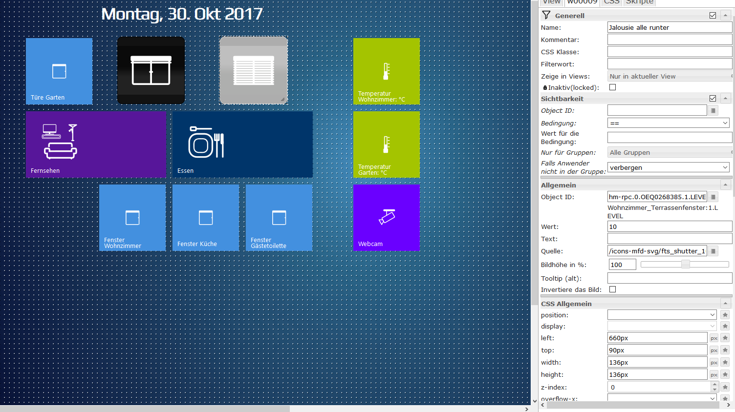 Ich weiß was ich will. z.B. ein Button mit einem Icon (von offenen Rollläden) mit einer von mir gewählten Hintergrundfarbe und wenn ich den Button auf dem Tablet drücke sollen die Rollladen auf einen bestimmten Prozentwert fahren.