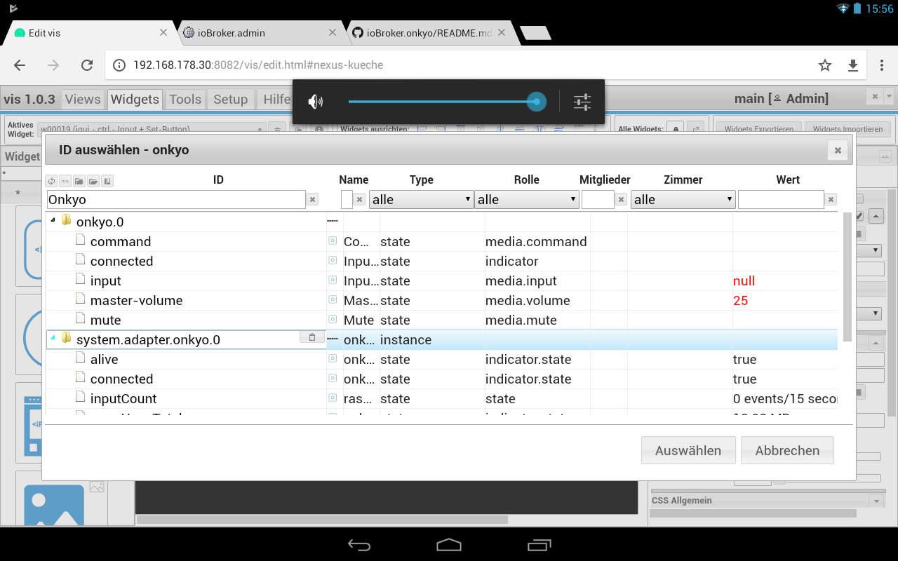 Iobroker läuft zusammen mit YAHM auf einem RasPi3, vielleicht ist der einfach zu schwach. Hab es jetzt mit den Knöpfen hinbekommen, finde ich auch nicht schlecht.