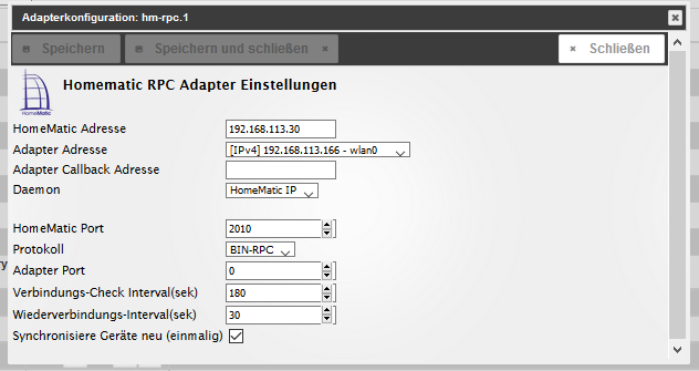 Wenn der Haken nicht automatisch entfernt wird, hat der Adapter keinen Zugriff auf den IP-Port deiner CCU.