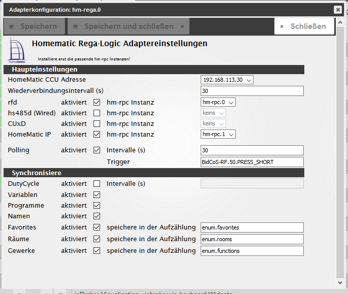 Bitte zuerst einmal die Konfiguration von hm-rega und hm-rpc.0 posten (falls mehrere rpc, bitte von allen. `