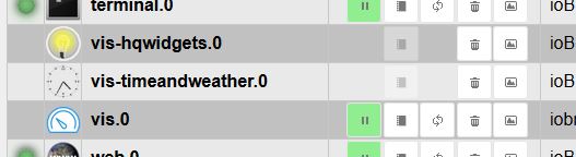 Wir bekomme ich zusätzliche Widgets mit rein - ich habe eine Instanz von vis-hqwidgets und eine von vis-timeandweather angelegt. Tauchen aber in der Vis nicht auf. Habe schon iobroker gestoppt, Upload vis durchgeführt und iobroker wieder gestartet - kein Erfolg. Mache ich etwas grundlegendes falsch?