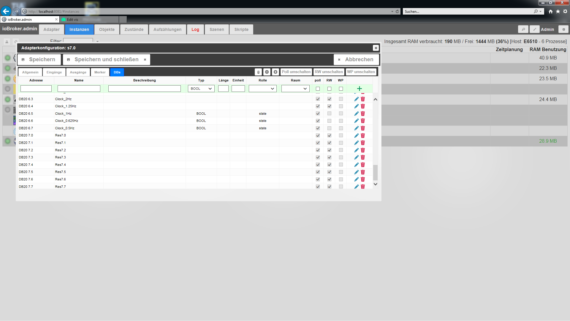 Ich versuche nur mal so als Test diese eine Leuchte blinken zu lassen. Dazu übergibt die S7 im DB20 einige Blinkmerker. Mein Ziel ist es den Clock_0_5Hz (Blinker mit 0,5Hz) der Leuchte zuzuordnen.