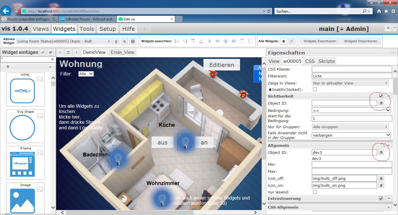Es gelingt mir jedoch nicht im Editor bei den Widgets Eigenschaften unter Sichtbarkeit ein Objekt zu sehen. `