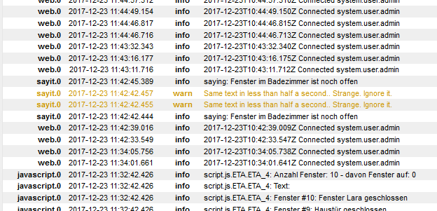 ps: im log steht zwar: saying: Badezimmer, Fenster noch auf, sagen tut er aber "Achtung, Feuer geht aus