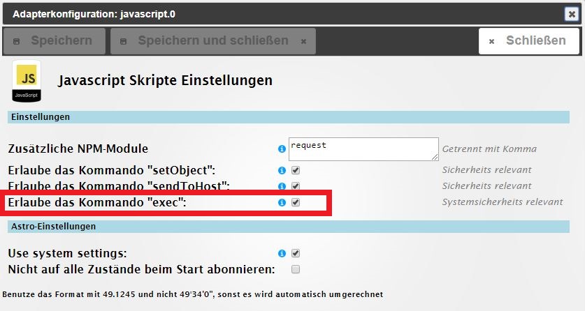 dass ich die EXEC Anweisungen zulassen müsse.