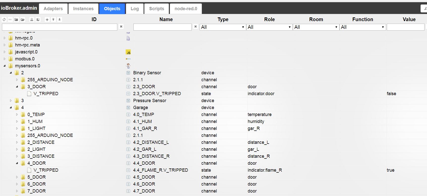 I have a few mySensors nodes with several Boolean variables setup. ALL variables values are properly displayed on admin/objects page, I see there real time change in variables status (true or false). But, in VIS some variables are changing status properly, some are stack on one fixed value. I tried to delete and reconfigure widget, but the result stays the same. Please see couple of screenshots explaining what is going on: