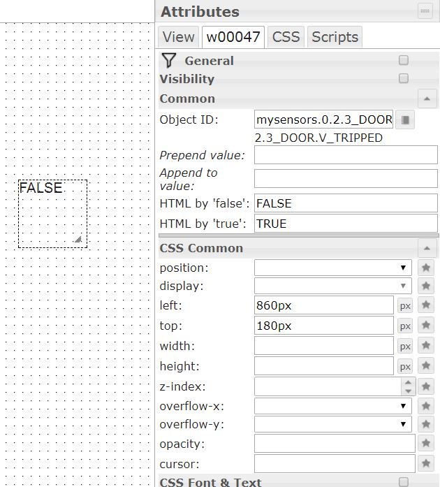 #3 - shows Bool HTML widget setup for 2.3_DOOR.V_TRIPPED. This widget reflects status of the actual input properly.