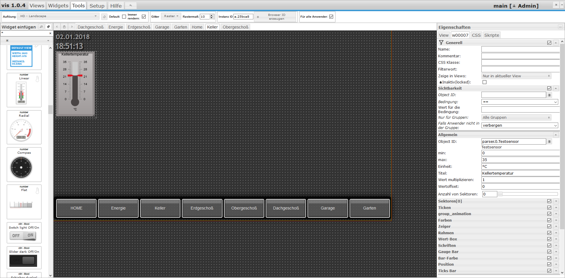 Ich bin noch ziemlich neu hier und versuche mich gerade etwas im Iobroker einzuarbeiten. Ich habe zum Test und zum ausprobieren mal ein Projekt mit ein paar Views angelegt und mal ein paar kleine Widgets eingefügt.