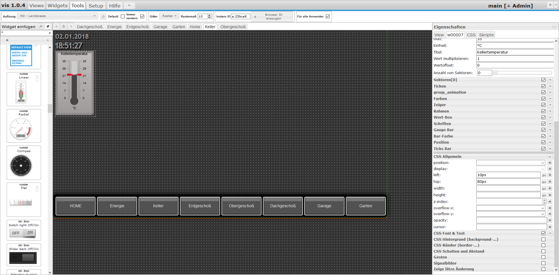 Nun habe ich das Problem das ich im Editor ein Widget für das Anzeigen einer Temperatur eingefügt und auch angepasst haben. Die Temperatur wird auch korrekt angezeigt.